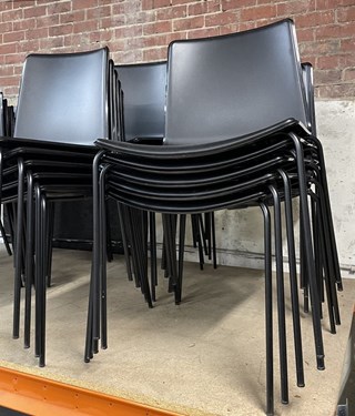 stackable chairs (black plastic seats, metal legs) 35